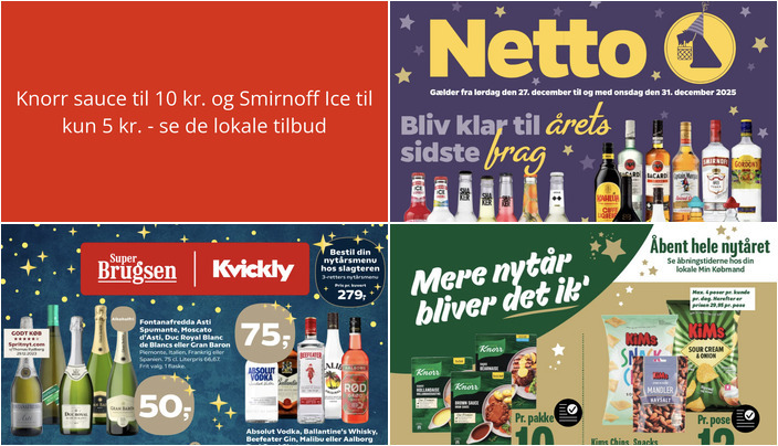 Netto har et godt tilbud på Smirnoff Ice, Shaker eller Mokai til kun 5 kr. pr. stk. (27,5 cl + pant). Der er en begrænsning på 24 stk. pr. variant pr. kunde pr. dag. Tilbuddet gælder fra lørdag den 27. december til onsdag den 31. december 2025.
