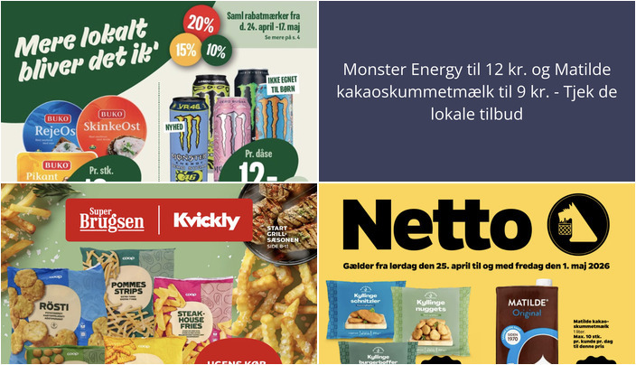 Netto har et skarpt tilbud på Matilde kakaoskummetmælk til kun 9 kr. pr. liter. Husk, at der er en begrænsning på 10 stk. pr. kunde pr. dag. Tilbuddet er gyldigt fra lørdag den 25. april til fredag den 1. maj.